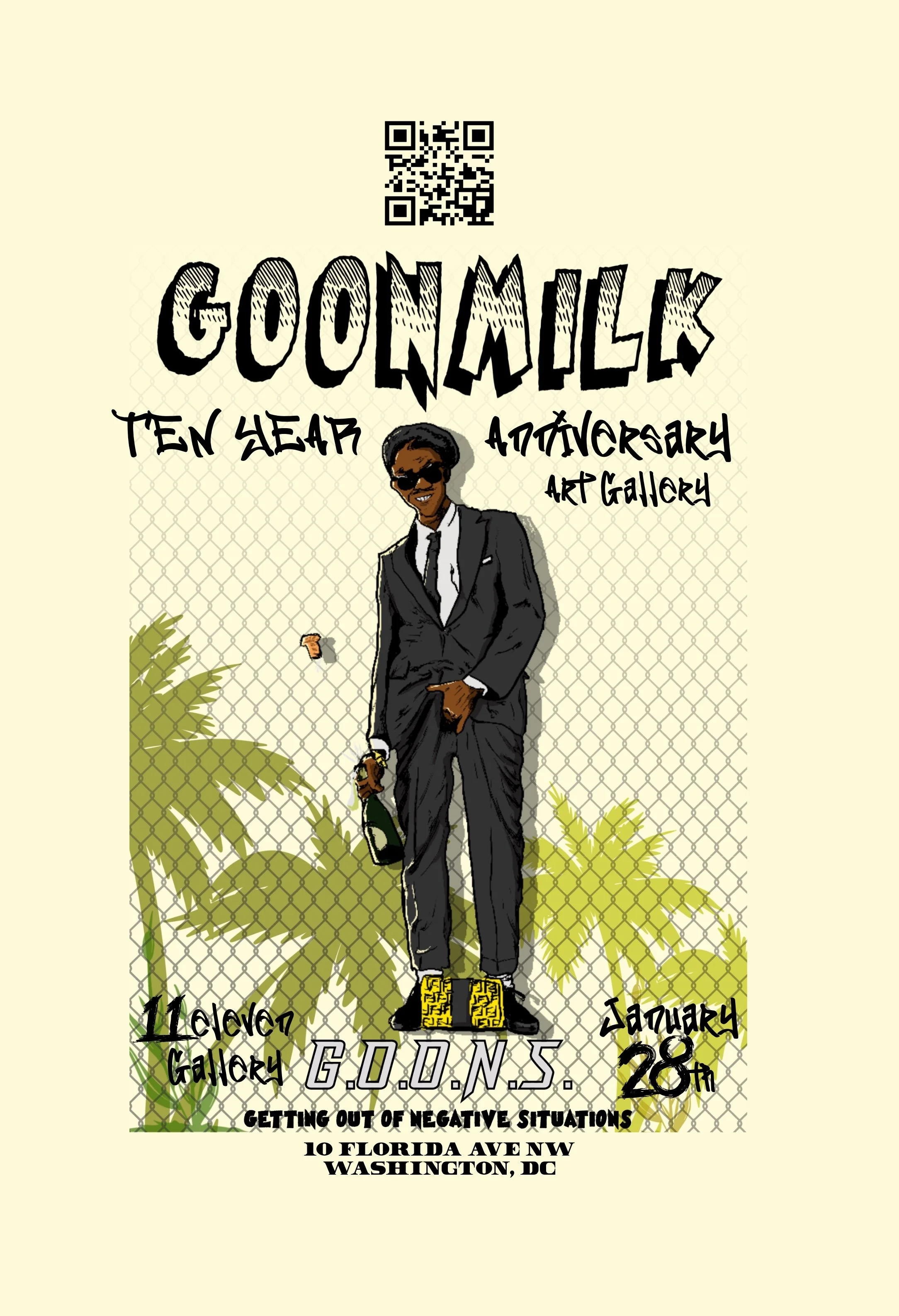 Celebrating ten years of GOONMILK showcasing my Augmented Reality Art at 1 of 25 Black Owned Art Galleries in the Nation, 11:eleven Gallery. Not only is this a one of one experience it’s also for an amazing cause. Half of all proceeds will be donated to Federal inmate Jay Tharps of our G.O.O.N.S. Jpay program where we donate to inmates in need.